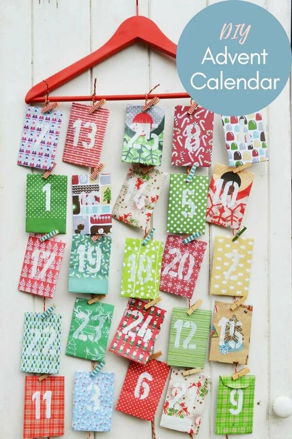 Pas besoin d’un design figé. Écris les chiffres au feutre, colle des stickers, tamponne à l’encre rouge ou dorée… Tu peux même remplacer 4 numéros par les lettres du mot « NOËL », à ouvrir chaque dimanche de l’Avent !
